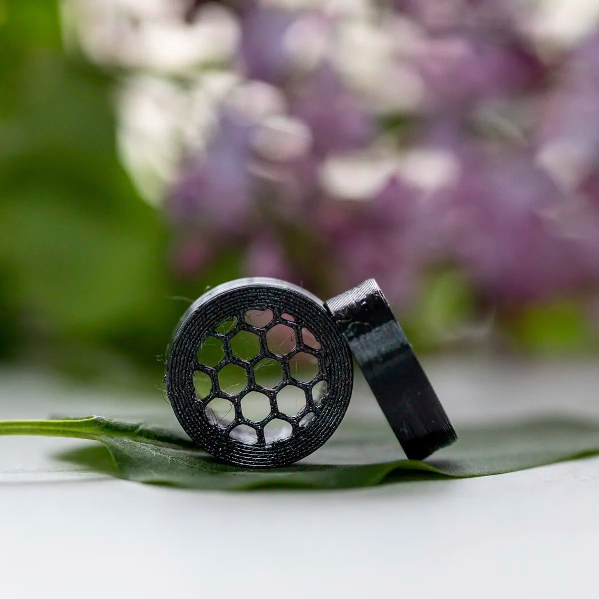 Þessi litli, kringlótti ilmvatnshaldari er dós með skrúftappa og hann er úr PLA sem er plöntubundið efni. Í dósina setur þú tilbúinn lyktarhaldara, í HONEY mælum við með að þú notir lok. Þú getur falið HONEY mjög snjallt bæði í leit innandyra, utandyra og á farartækjum. Lyktarhaldarinn er með hunangsmynstur neðst, sem losar lyktarsameindirnar. Hvorki nefið né umhverfið kemst í snertingu við lyktina.