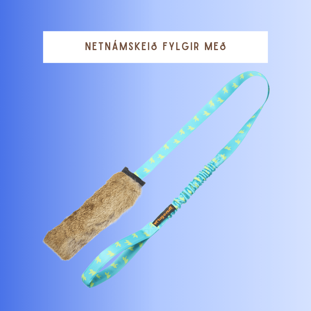Eitt það skemmtilegasta er að leika við hundinn þar sem eðlishvötin kikkar inn. Með Rabbit Skin Squeaky Bungee Chaser færðu nákvæmlega það. Hér mætast mýkt, hreyfing og spennandi hljóð, allt sem vekur veiðihvötina og fær hundinn þinn til að elta, grípa og elska!